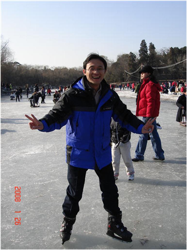 嘿嘿,本來是被MM拽上去逛學(xué)校,哈哈。結(jié)果在康博思腐敗了頓后,轉(zhuǎn)悠到未名湖,發(fā)現(xiàn)湖面上厚厚的冰,很多人在上面溜冰、玩冰車。本來沒打算劃的,因為就是大學(xué)本科的時候在陜西滑過幾次,并且還不是特別會。真正的冰上更是沒感受過,雖然每年我們宿舍后面的荷塘也結(jié)上一層厚厚的冰,但沒敢上去過。在老婆的忽悠下,被她連哄帶騙花了10元租了雙冰鞋。開始她還說和我換著玩的,后來才發(fā)現(xiàn)那是騙人的。