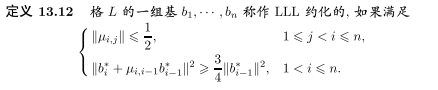 LLL約化基的定義如下(文獻[1]定義13.12)