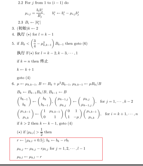 先摘錄文獻[1]中的LLL算法描述流程,及LLL約化基的定義