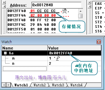 要知道為什么有的是CC,有的是00啊,還有,千萬別看到sizeof(A)=12,就把12位置也給填上CC啊