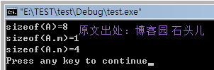 printf("sizeof(A)=%d\nsizeof(A.m)=%d\nsizeof(A.n)=%d\n",sizeof(a),sizeof(a.m),sizeof(a.n));